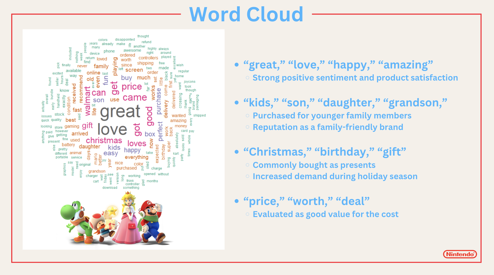 Conducted a comprehensive brand analysis for Nintendo using multiple online data sources to assess consumer sentiment, search behavior, and customer feedback. Leveraged Google Trends to identify patterns in consumer search interest, analyzed Twitter/X data to evaluate brand perception and online conversation trends, and mined online customer reviews to extract actionable feedback. Applied regression analysis, text processing, and Tableau to synthesize findings across all three data streams into an integrated report with strategic recommendations for brand management.