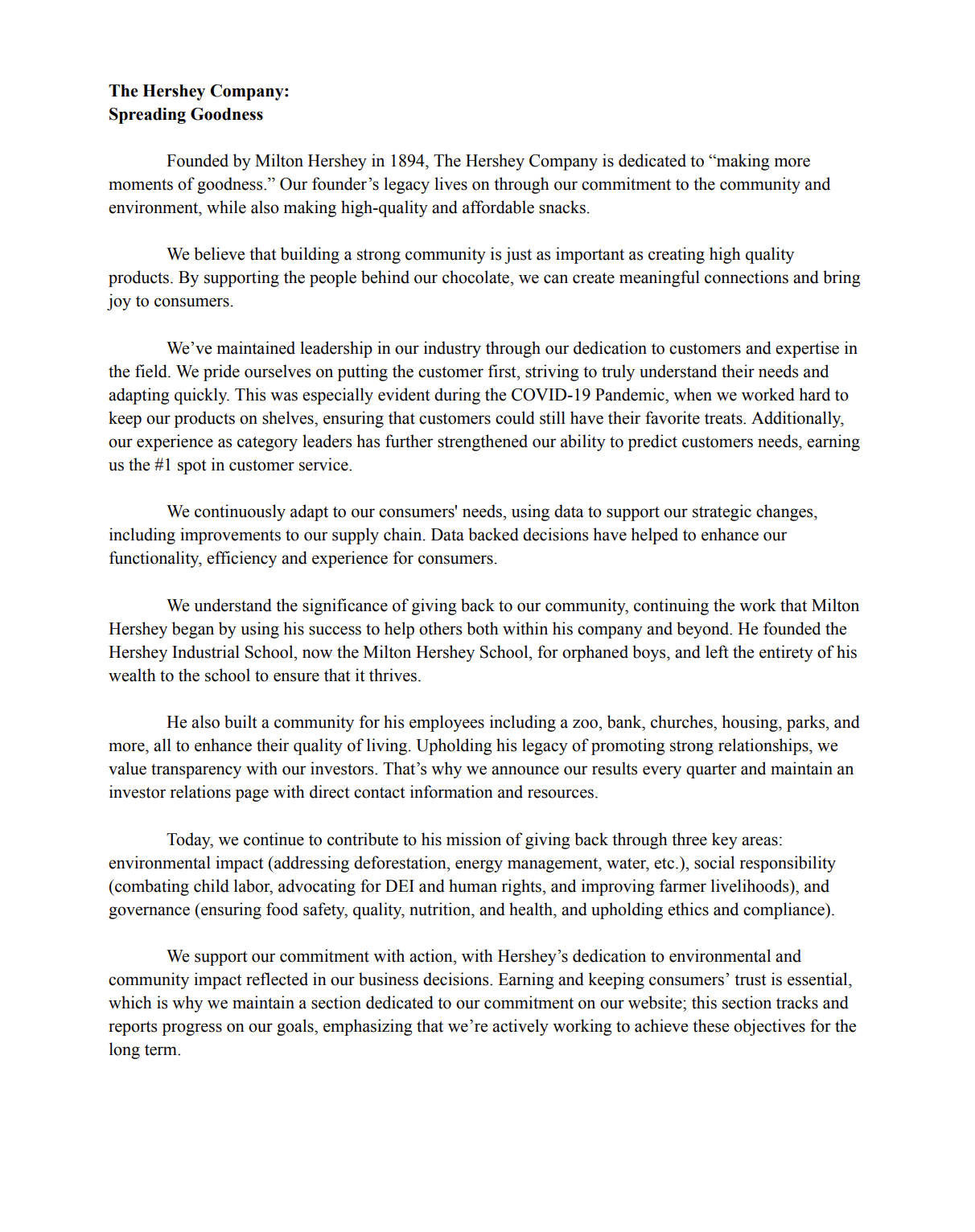 The Hershey Company Narrative